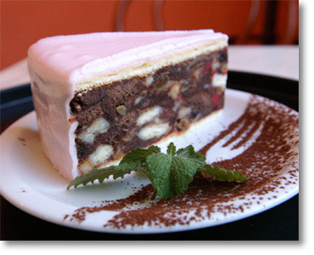 A tésztát tepsibe öntjük, beleszaggatjuk a pudingot, 180 fokos előmelegített sütőben kb. 30 perc alatt megsütjük.