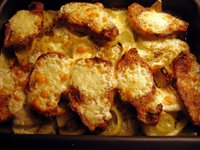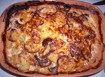 A hozzávalókat jól összekeverjük, és kivajazott, kilisztezett tálban közepes tűznél körülbelül negyven percig – tűpróbáig – sütjük, amíg a tetején aranysárga színű réteg nem képződik. Hidegen felszeleteljük, és cukrozott tejföllel vagy tejszínhabbal tálaljuk