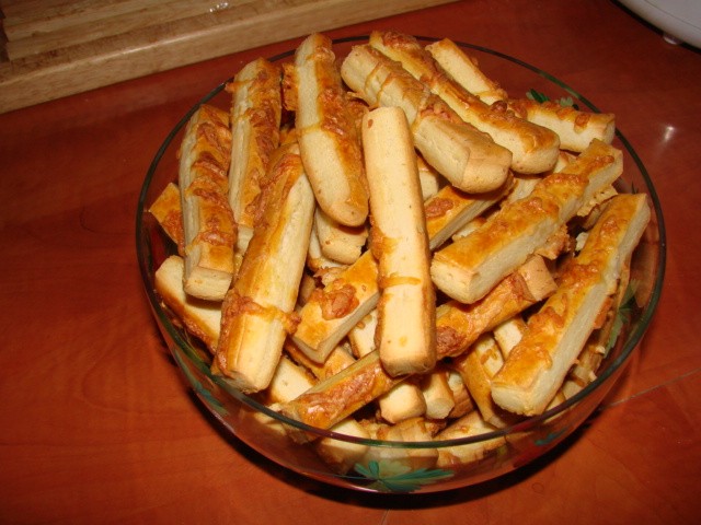 A hozzávallókat összegyúrni, vékonyra kinyújtani, kiszaggatni.